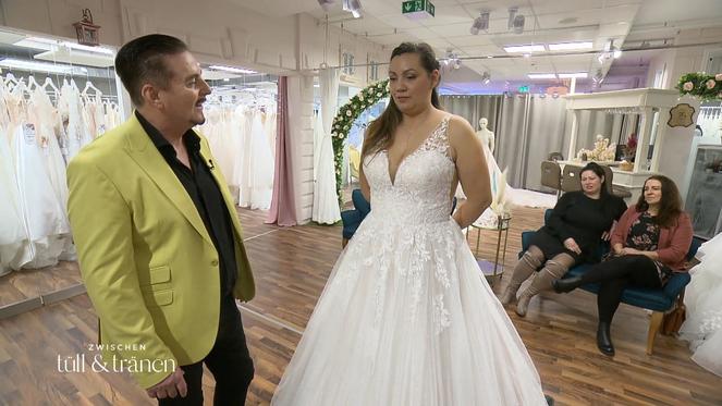 Bräutigam Christian ist erstaunlich zurückhaltend dafür, dass er anfangs so auf seinen eigenen Geschmack gepocht hat. Besser ist das, am Ende muss es ja schließlich die Braut ausbaden. Den Vorschlag der Expertin mögen jedenfalls beide nicht wirklich. Gattin Dominika ist entzückt über so viel Harmonie und gönnt Christian dann doch noch eine konstruktive Idee: Er hätte so gerne eine lange Schleppe für seine Braut.