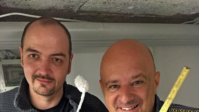 Während Matze versucht die schwere Deckenkonstruktion mit Hilfe von zwei kleinen Stützen vorsichtig und geplant zu Boden zu lassen, blickt Steffi ziemlich skeptisch drein. "So, ich lass jetzt knallen gleich", warnt der Familienvater.
