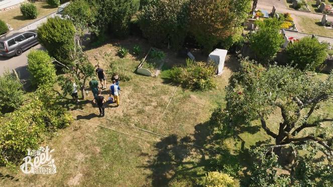 Nach sieben Tagen harter Arbeit ist es endlich so weit: Die letzte Rasenrolle wird verlegt. Ein kollektives Aufatmen, ein bisschen Stolz und ganz viel Freude liegen in der Luft. Jetzt heißt es für Lea und Fabian: Hinsetzen, genießen und staunen.