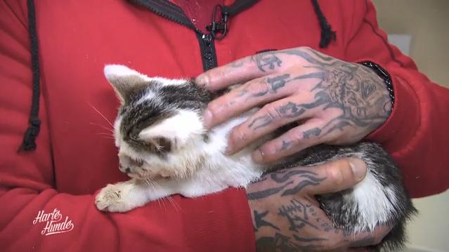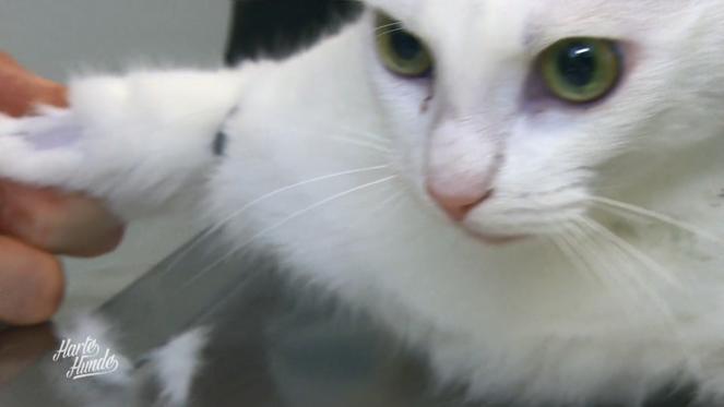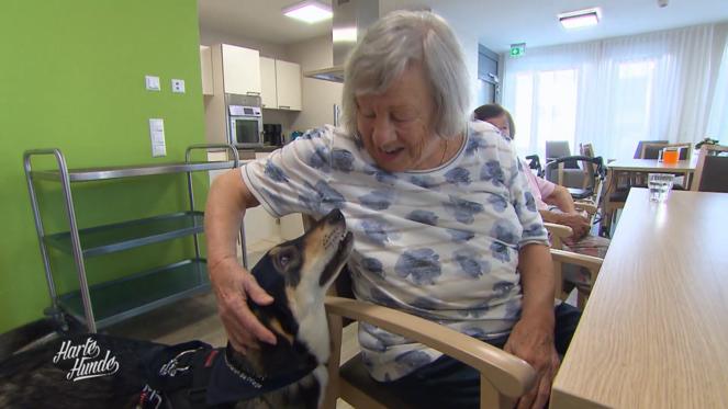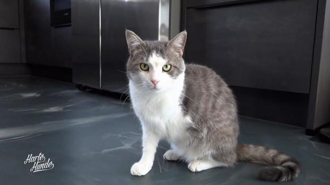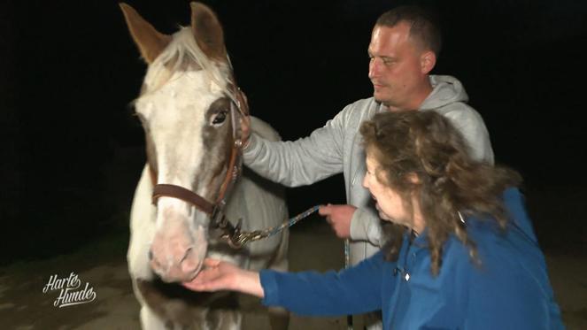 Alex aus Ralfs Team weiß genau, wie man sich einem so misstrauischen Tier nähern kann. Und zum Erstaunen von Sandra Bohlen fasst Moni tatsächlich etwas Vertrauen. "Ich bin erstaunt, gerade, dass sie von dir das Leckerli nimmt! Das ist Wahnsinn", freut sie sich. "Wahrscheinlich strahlst du etwas aus, das ihr Vertrauen gibt." "Ja, wahrscheinlich weiß sie, dass ich selber einen Zwei- und einen Dreibeinigen Zuhause habe."